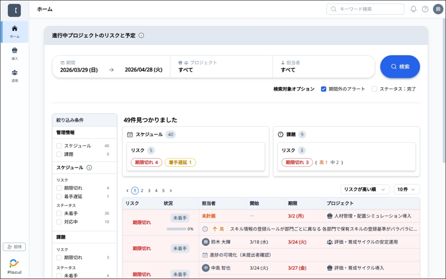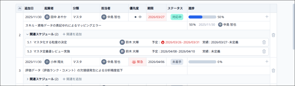 着手が遅れているスケジュールや期限切れの課題などを一覧で確認できるようになりました。
