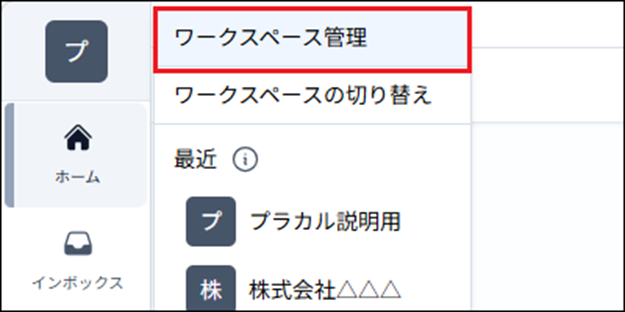 2)表示されたメニューから「ワークスペース管理」を選択します。