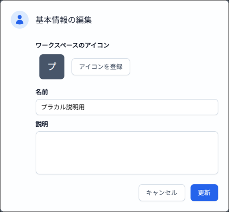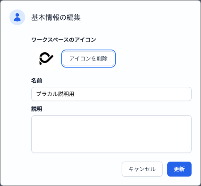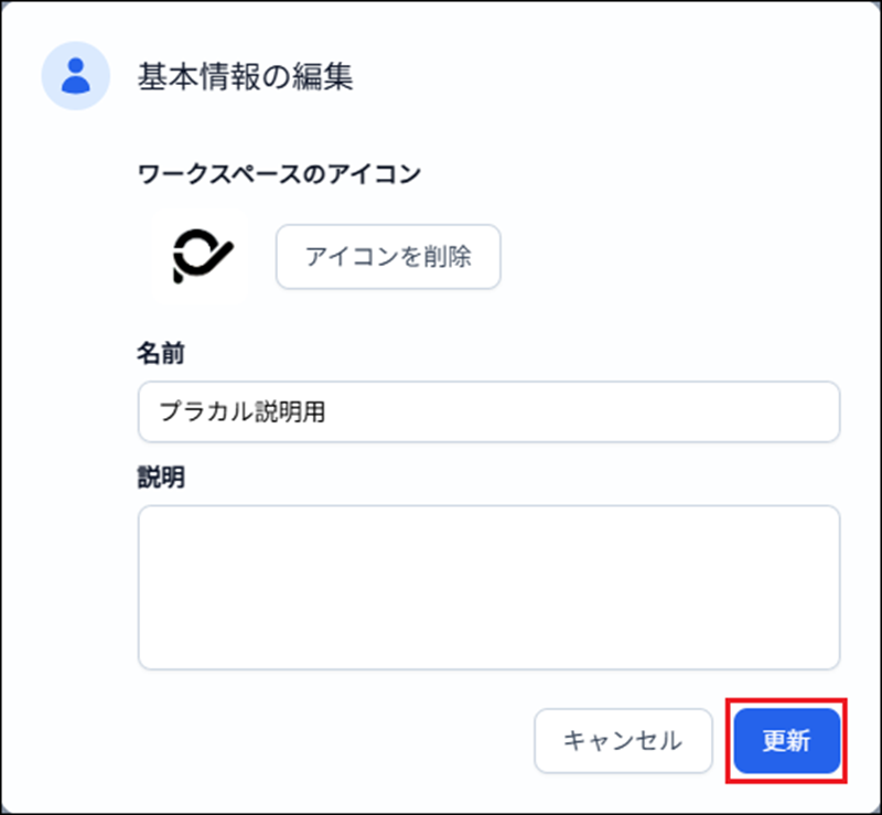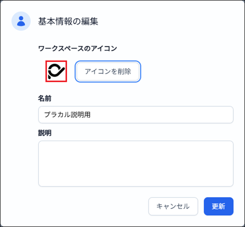 3)「更新」 をクリックすることで、ワークスペースアイコンが設定されます。