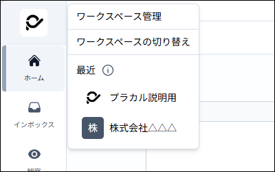 ● メニューの「最近」に表示されるワークスペース一覧
